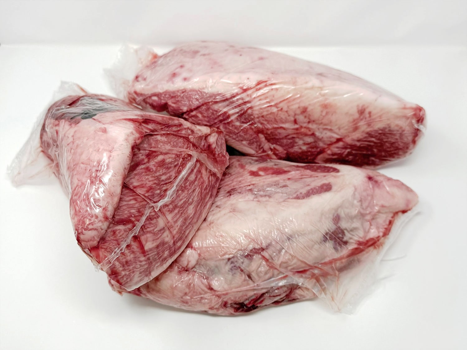 和牛肩三角 幅広い用途でお使いいただける小ロットで人気の高い部位です。グリムキスペック加工済みで、お使いいただきやすくなっております。 -